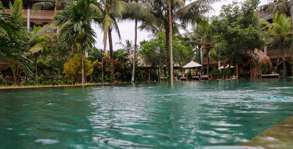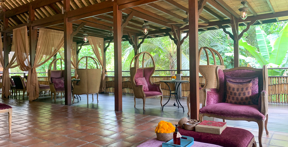 After a long busy day yesterday, today was stay home, almost, and relax... It was also a great oportunuity to get the complementary Spa visit done, so we booked that yesterday, as we over dinner had been talking about when we last had a real massage. We would have to go back to February 2020, just before Covid shut everything down, so we included that it was about time... But first, rising bright and early, we discovered that we over night had been blessed, and that we, had we been here in the dry months, would be able to admire Mount Abang from our terrace. This morning however, we could only see one side of it.