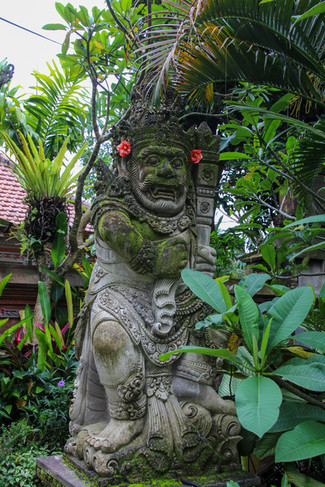 After a wonderful session we headed downtown towards the Ubud Palace, and although we would not be there for the performance which is in the evening, we would also get to walk through town and see some of the shops and other sights of Ubud. The palace was a large area, which followed the "rules" of how you build a tradicional house in Bali. 1 plot, 4 pavillions. The northern pavillion for the old, the western the temple, the kitchen in the South and the young to the East.