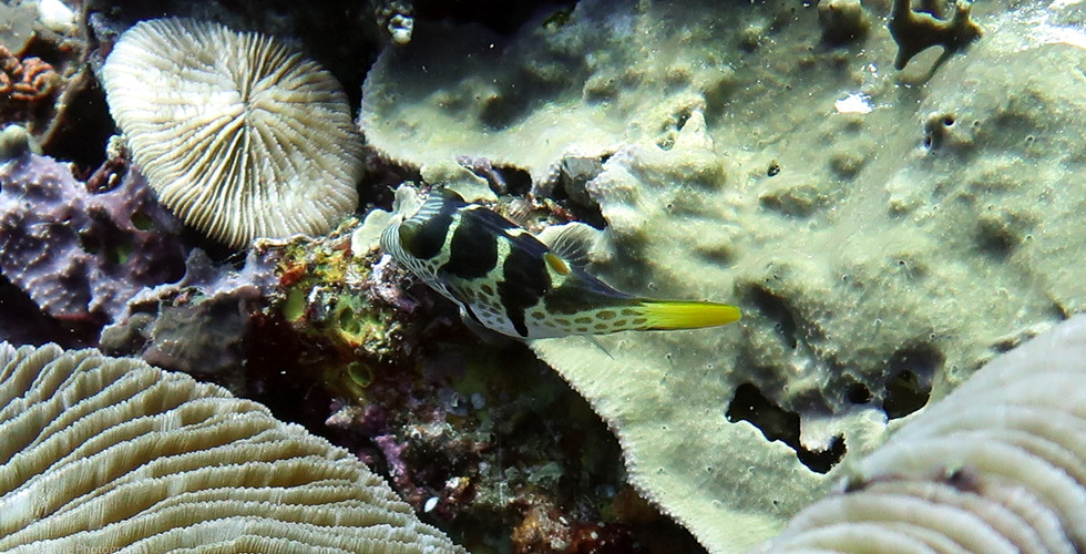 Last dive of the day was the Secret or Mirko Reef. Not good signs as we got there as we couldn't see the bottom, 15m down, but in we went. Very strong current, so we deciced to "go with flow" instead, and see what we could find. Although not as stunning as the first dive, we none the less spent all our permissible time, and a bit more, as we all went into decompression on the computers. No rush nor panic though, launch the SMB and then heading up from the 17m depth we were at.